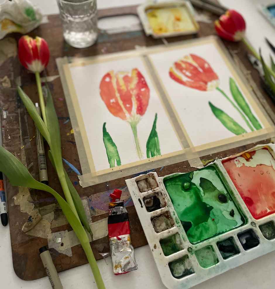 Learn to Paint Tulips with Watercolor in Ink in Less than 2 hours (even if it's been years since you've picked up a brush).