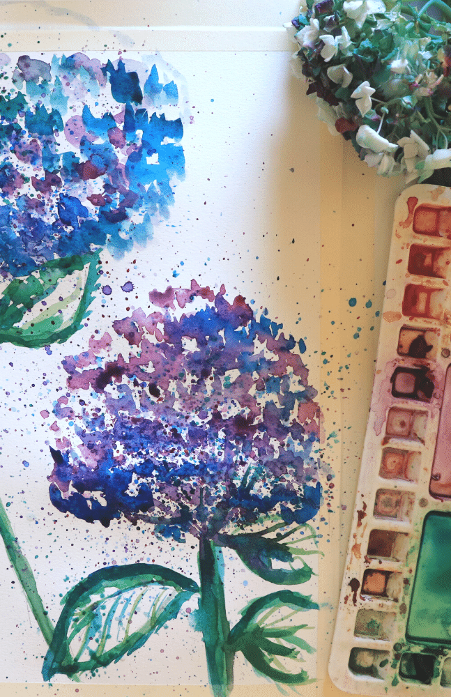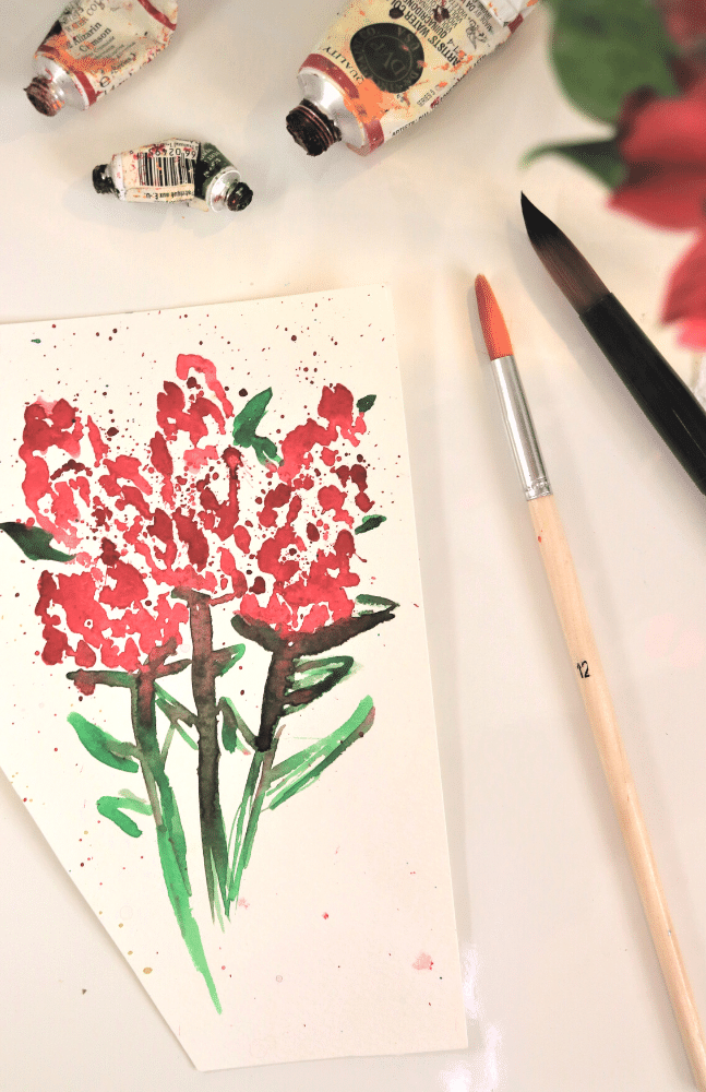 Acrylic and watercolor paints work very differently, but I couldn't quite get the idea out of my mind...could I create quick, energetic, lively floral art by splattering the paint all over? It looked doable, but there was something more.