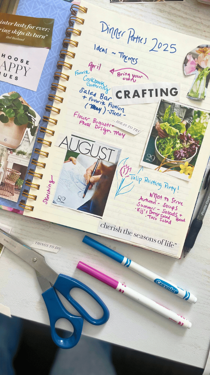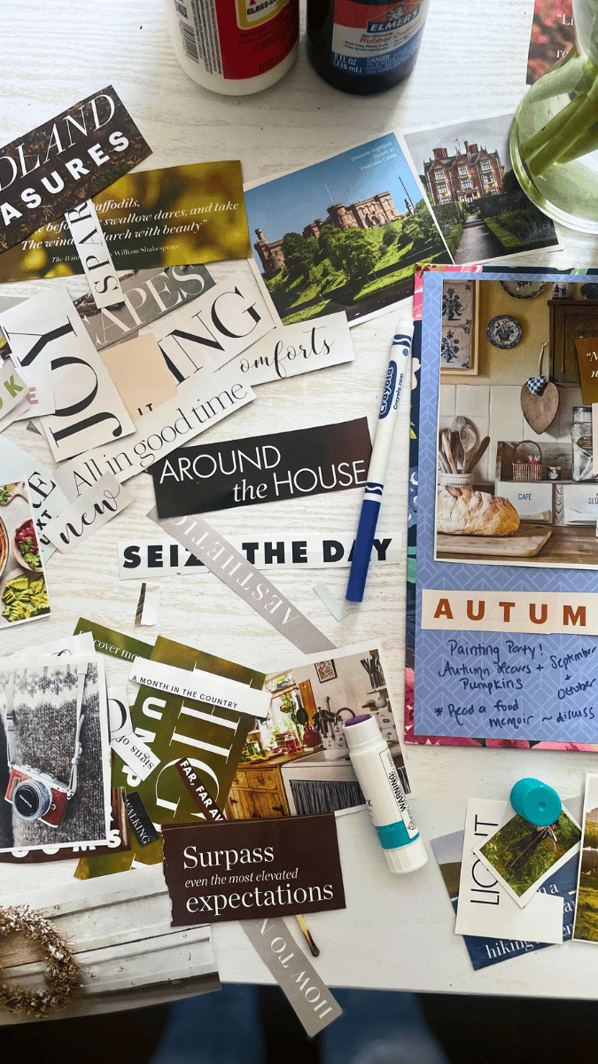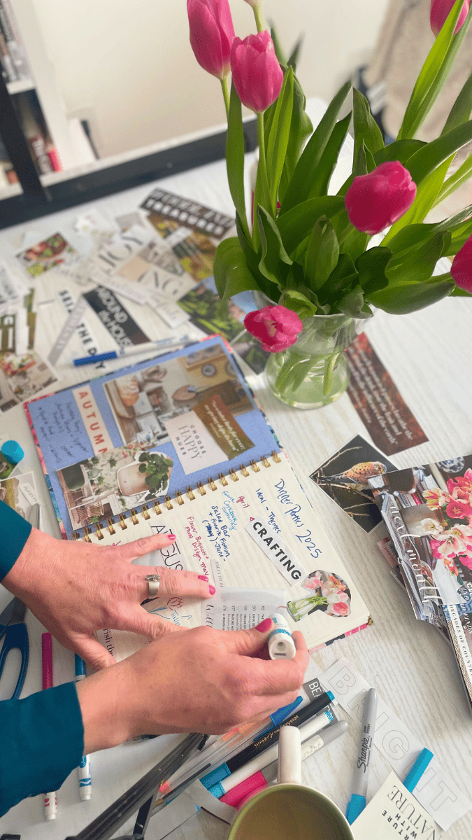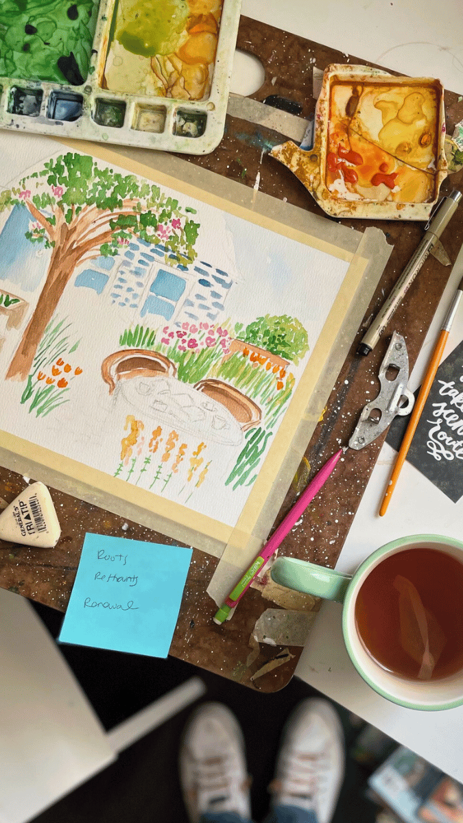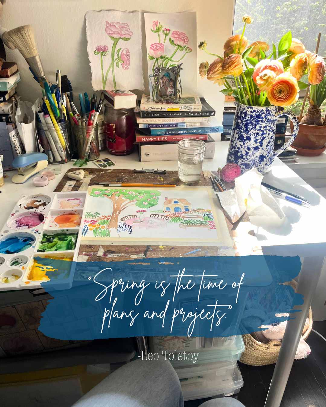 The Spring Session mini course is your playground to dream and plant and plan. The goal is to create a springboard for the spring season of your life. Whatever seems fuzzy now, we want to find clarity. We begin and move to the next step. We'll use watercolor, pen and some paper and glue to create two projects.