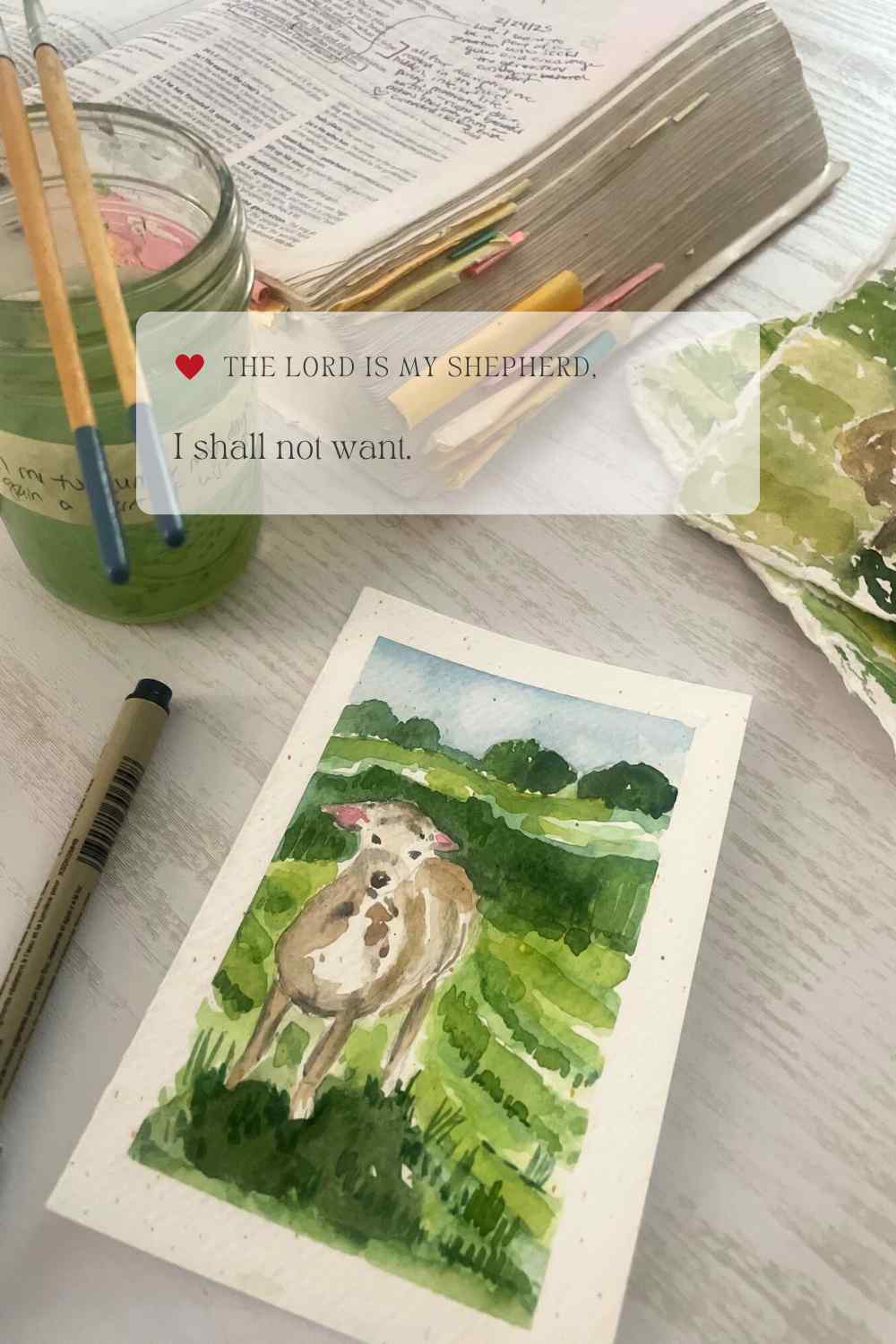 Another revisit is a deep dive again into Psalm 23, always a favorite. This psalm captivated me several years ago and once again, I felt the drawing of the illustration of Good Shepherd and sheep.