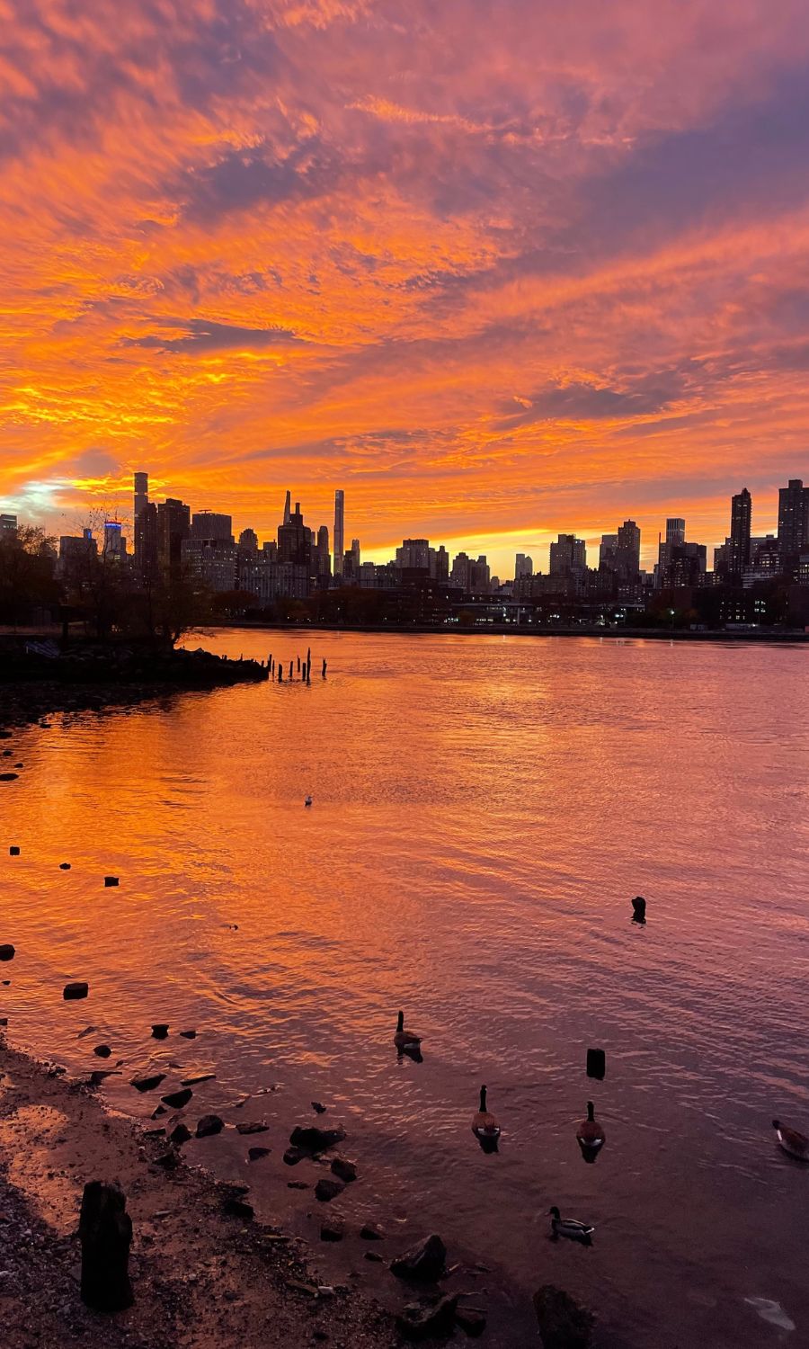 Tonight, the gray clouds were lit on the bottoms with a fiery pink glow (see picture above) as the sun descended behind the buildings, sending its final farewell with a sky the most brilliant artist cannot replicate on canvas.