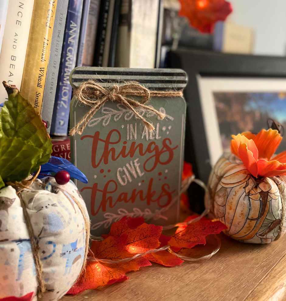 It's kept out to remind myself to give thanks each day until Thanksgiving is over. The painting is tucked inside my journal or the fall décor, a reminder next year of this year's blessings.
