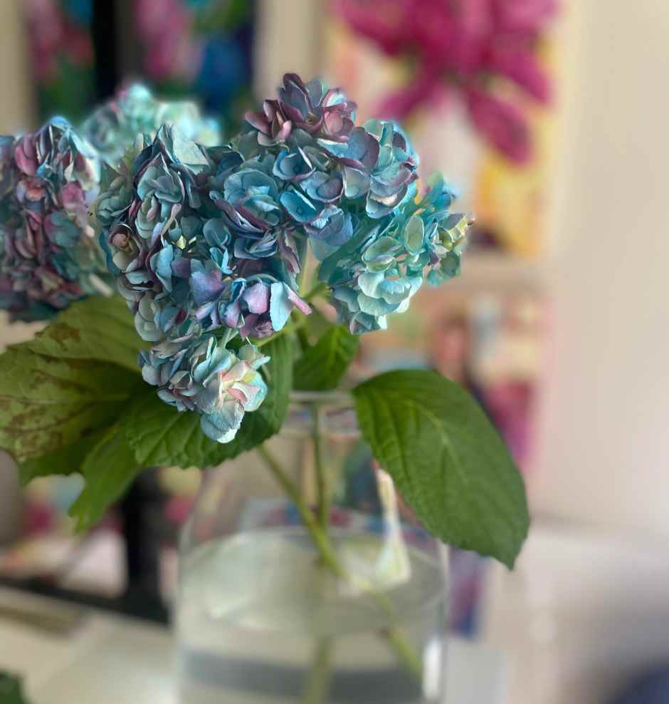 In the last few years, something shifted. The color-drenched hydrangeas grabbed my attention. I think it was during the pandemic, towards the end when I was looking for beauty and flourishing things. Was it the bigness of their tree like flowers? Their refusal to stop blooming? The way the heat didn't hit them August when everything else was withering in the heat of multiple triple digit days?