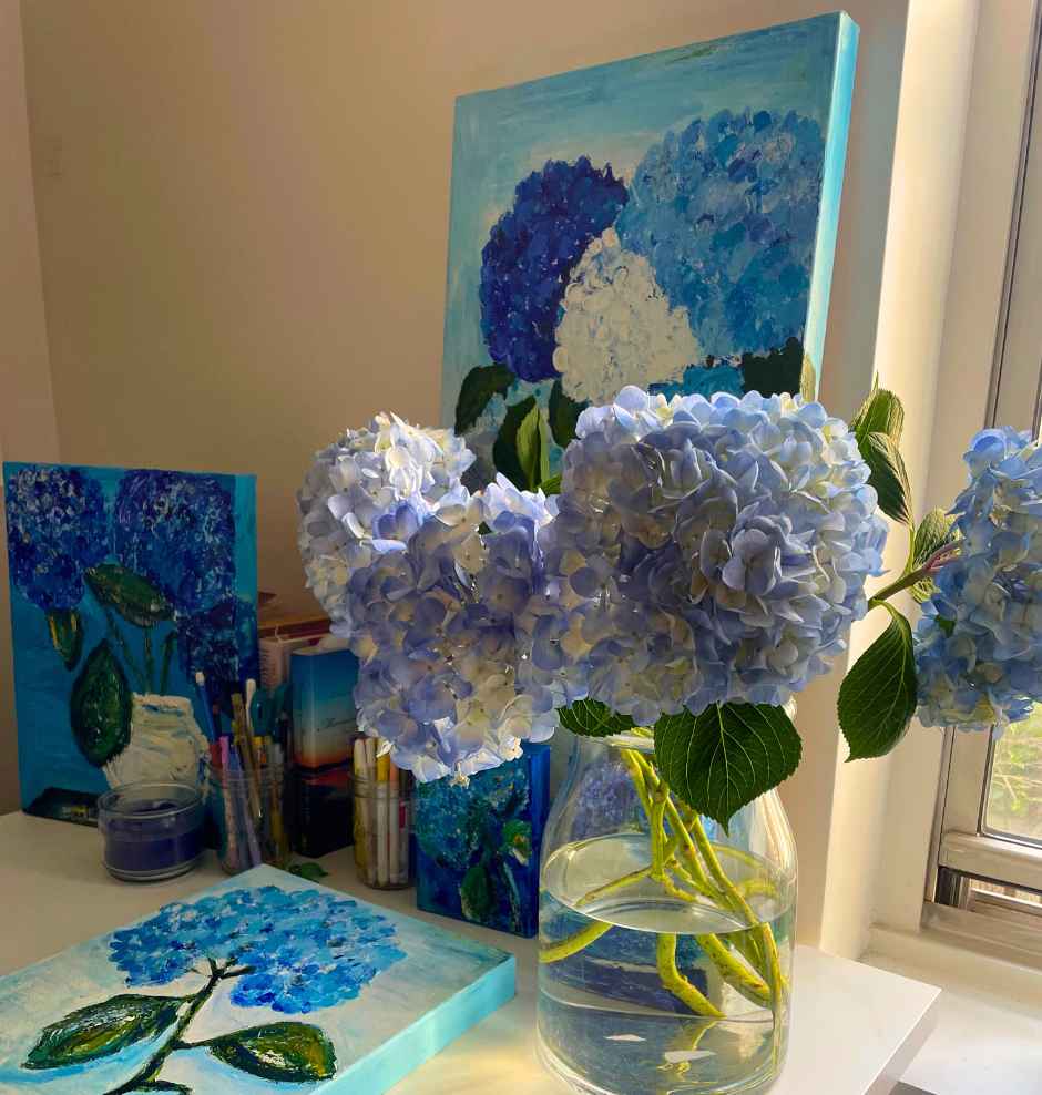 Around the time hydrangeas were inviting me to appreciate them, study them, enjoy them, I realized I'd lost a bit of heart! It was a bit of a dark season, but like all dark seasons, there is gold strands. I started painting hydrangeas.