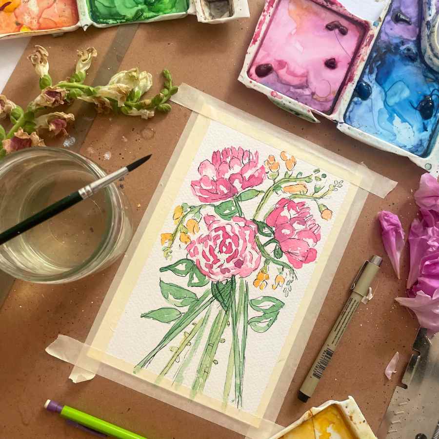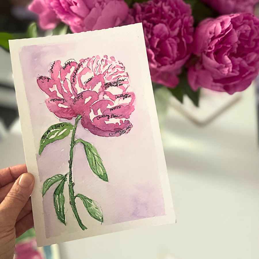 If painting a peony feels intimidating, I break it down – you'll have fun and be so impressed with yourself. This spring I spent a lot of time painting one peony after another, mostly pink peonies (these were my favorites this year) and little by little, I figured out how to paint them in a way that was fun and pleasing to the eye.