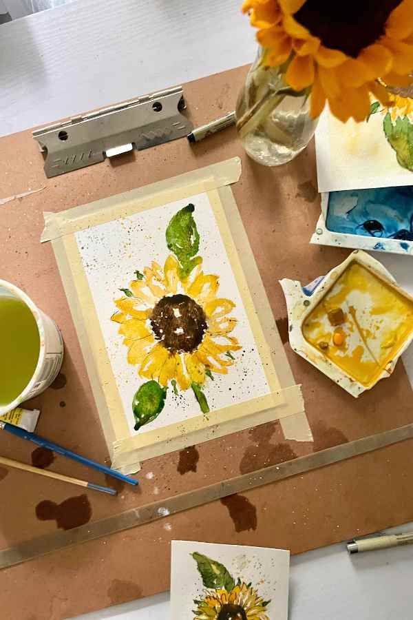 here in this article (and video) a few years ago, but just to recap how to paint a sunflower:
