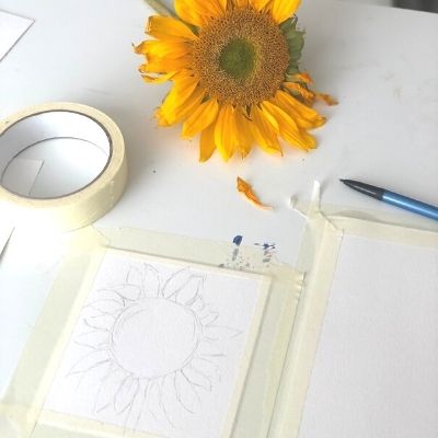 • After the basic outline of the sunflower is done, I'll leave the rest of the detail for the painting. No need to sketch in the sunflower seeds or other details.