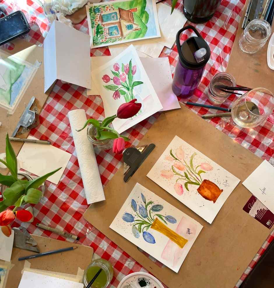 Have you attended a painting party? Earlier this month, a group of friends gathered for an afternoon of conversation, snacks, and watercolor painting.