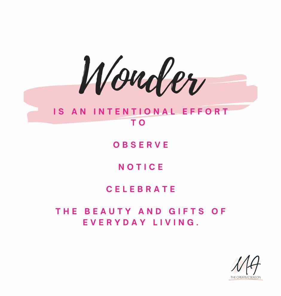 To do that I know that I not only need to have the discipline of practicing creativity, but the discipline of noticing and seeing the wonder in the world.