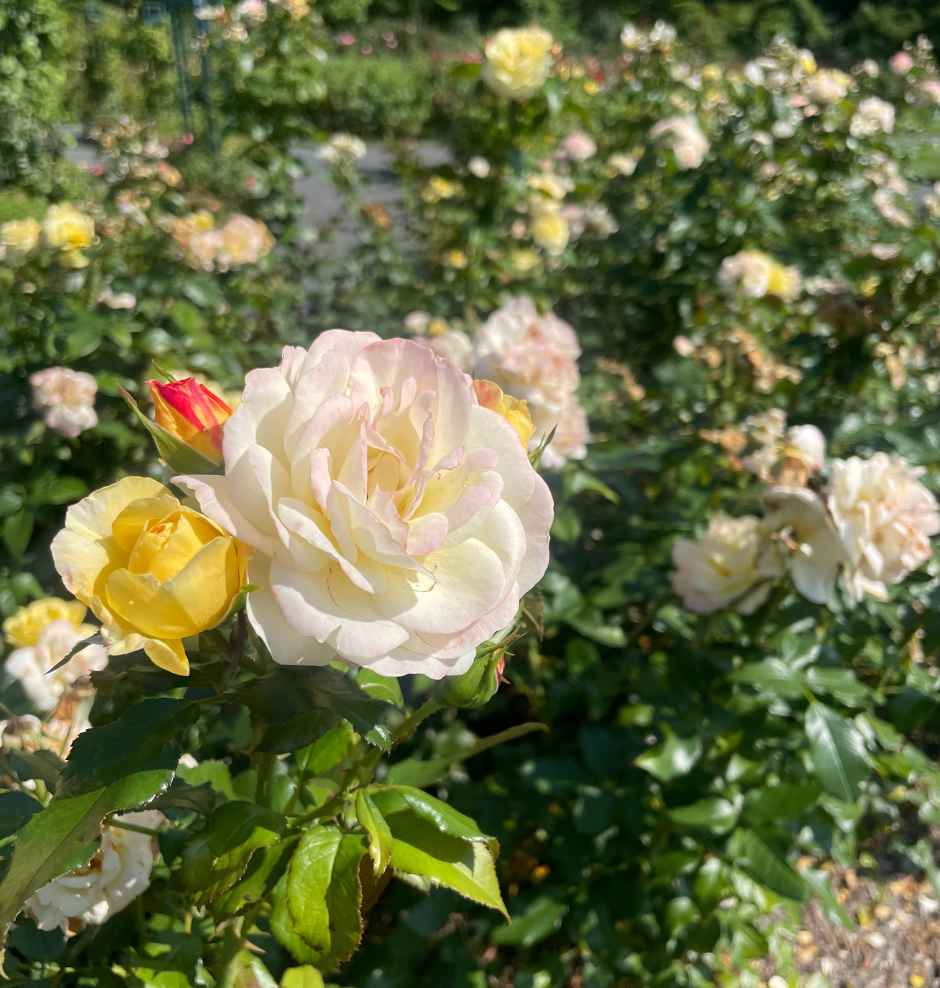 Spring is a flurry of work, discovery, frenetic energy. Taking care of those roses required a lot of spring work, yet the beauty of roses occurs under the care of gardeners who excel at tending work, the careful art of slowly pruning. Without pruning, there would be too many blooms, branches, and leaves to feed, creating a mediocre rose bush instead of one that is stunning.